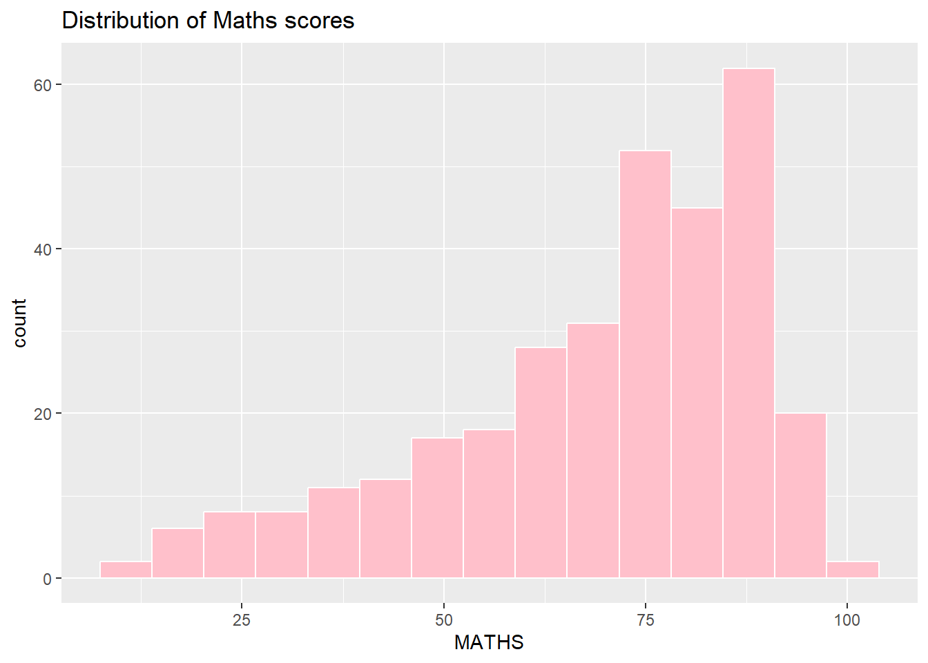 ggplot(data=exam_data, aes(x = MATHS)) +