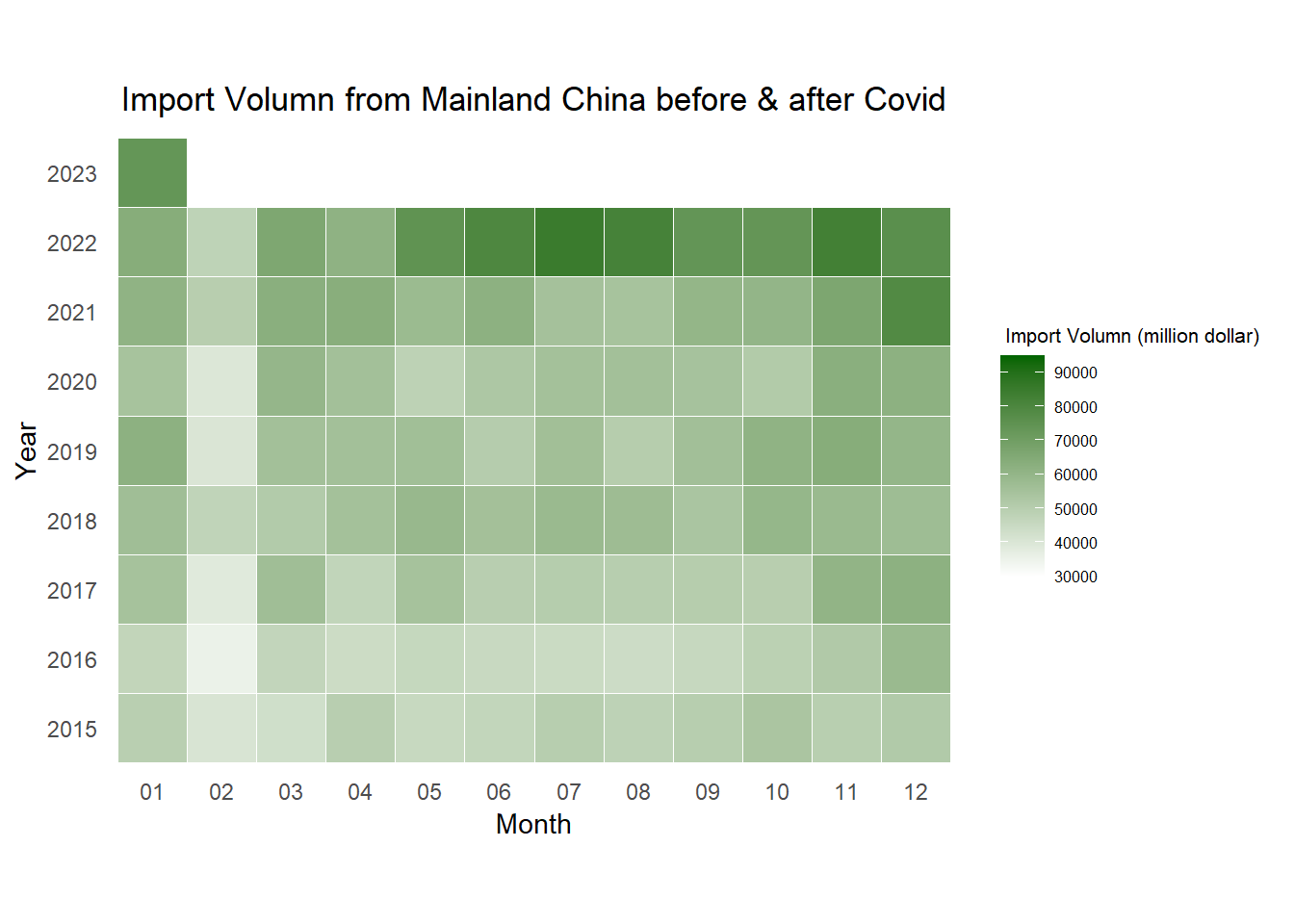 scale_fill_gradient(name = " Import Volumn (million dollar) ",