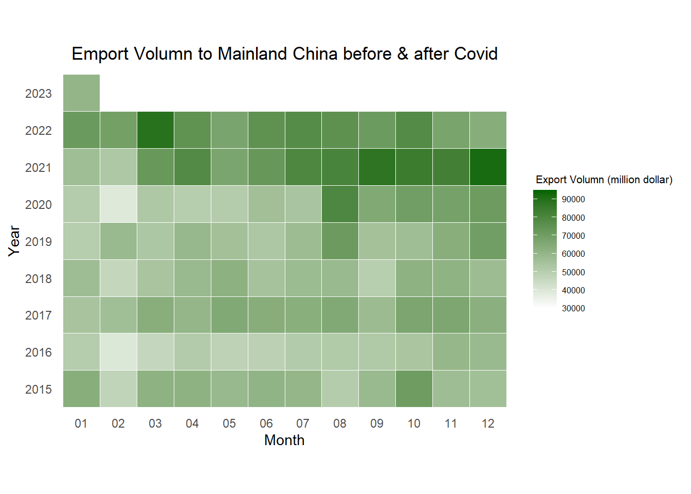 title = "Emport Volumn to Mainland China before & after Covid") +